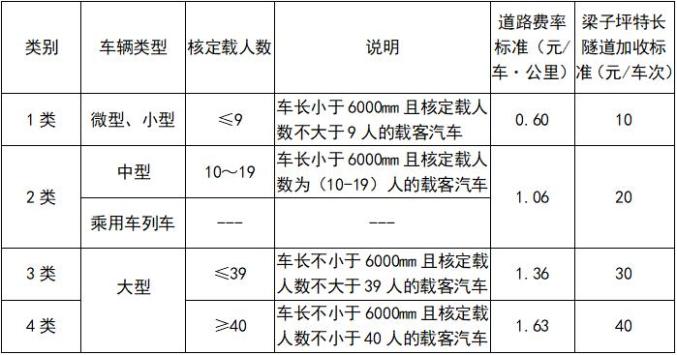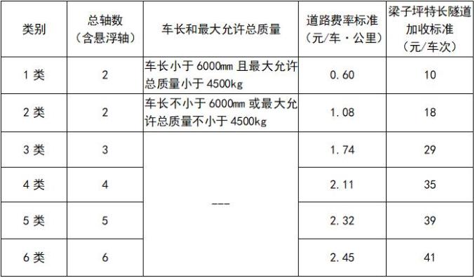 除国家规定免缴通行费的车辆外,其他车辆均须按照《收费公路车辆通行费车型分类》(JT/T489-2019)及下列收费标准缴纳车辆通行费。