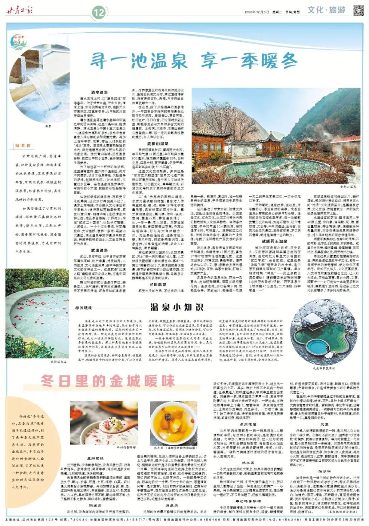 如果你错过了甘肃秋的璀璨,那就请不要错过冬的热情,暖冬生活,从养生开始,围着暖炉吃美食,泡着惬意的疗养温泉,才是甘肃的冬季生活。