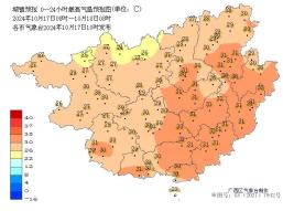 昨天08时到今天08时,广西大部出现降雨,主要以小雨为主,桂西北及桂中、桂南一些地方有中到大雨,局地有暴雨到大暴雨,最大降雨量出现在来宾市金秀县大樟乡瓦厂气象观测站(109.7毫米)。气温方面,桂北相对比较凉快,最高气温在23~29℃,桂中桂南大部最高气温在30~32℃。