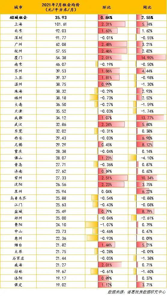 楼市 40城7月房租榜:西安租金同比涨幅第六7月毕业季热潮减弱,你所在城市的房租价格降了吗?