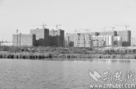 图为:在江夏藏龙岛汤逊湖畔,临湖的商品房拔地而起。(记者倪娜 摄)