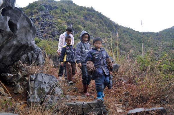 在广西都安县隆福乡葛家村,记者看见一对小兄妹,穿着沾满泥垢的棉衣、凉鞋,背着装满牛粪的背篓,弓着腰,一步步向山坳走去。背篓里的牛粪超过40斤。男孩12岁,女孩10岁,但身高只有一米出头,非常瘦小。那天本该上学,但是教学点唯一的老师去乡里开会了,孩子们只能停课。