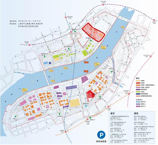 上海世博会地图及UBPA所在区位。一般将UBPA的西北区块称为北区,东南滨江称为南区 图片来源:世博会官网