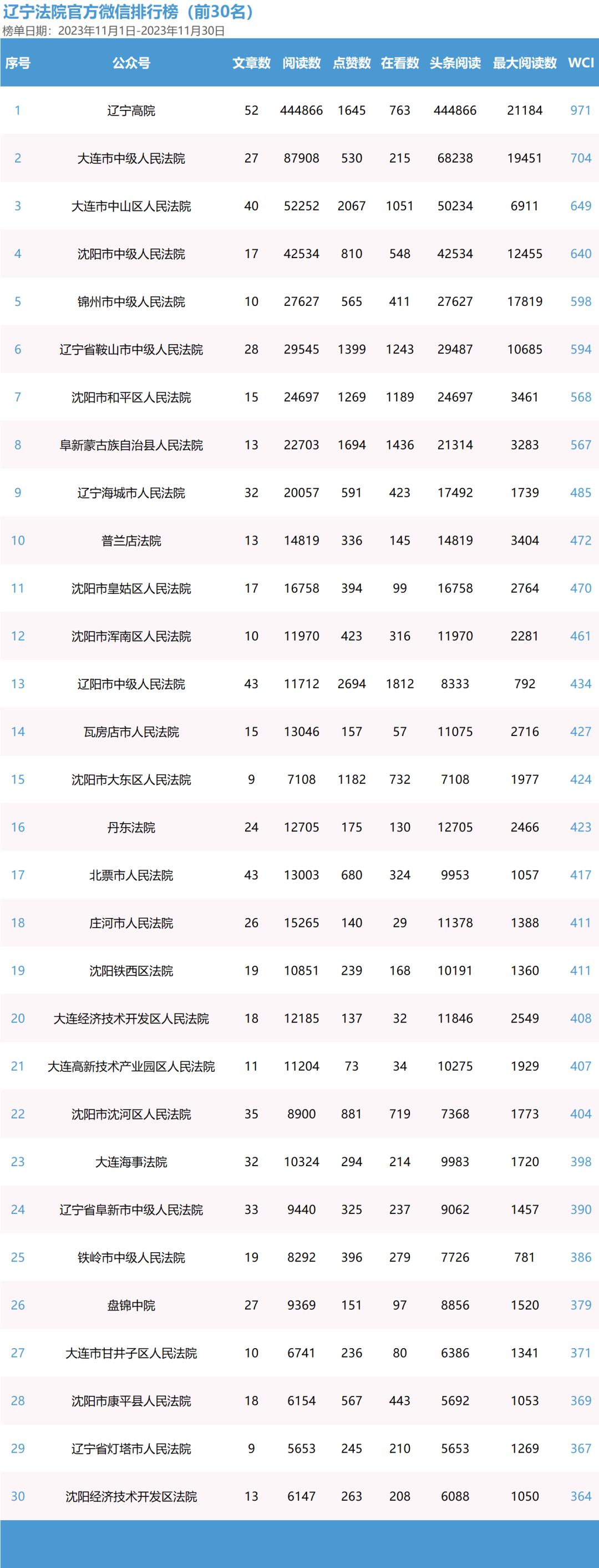 纵观五个月榜单,沈阳地区基层法院进榜数始终保持在十家及以上,本期进榜十一家;大连地区基层法院进榜数始终保持在七家及以上,本期进榜十家。两地小编均衡发力,发布内容普获认可。