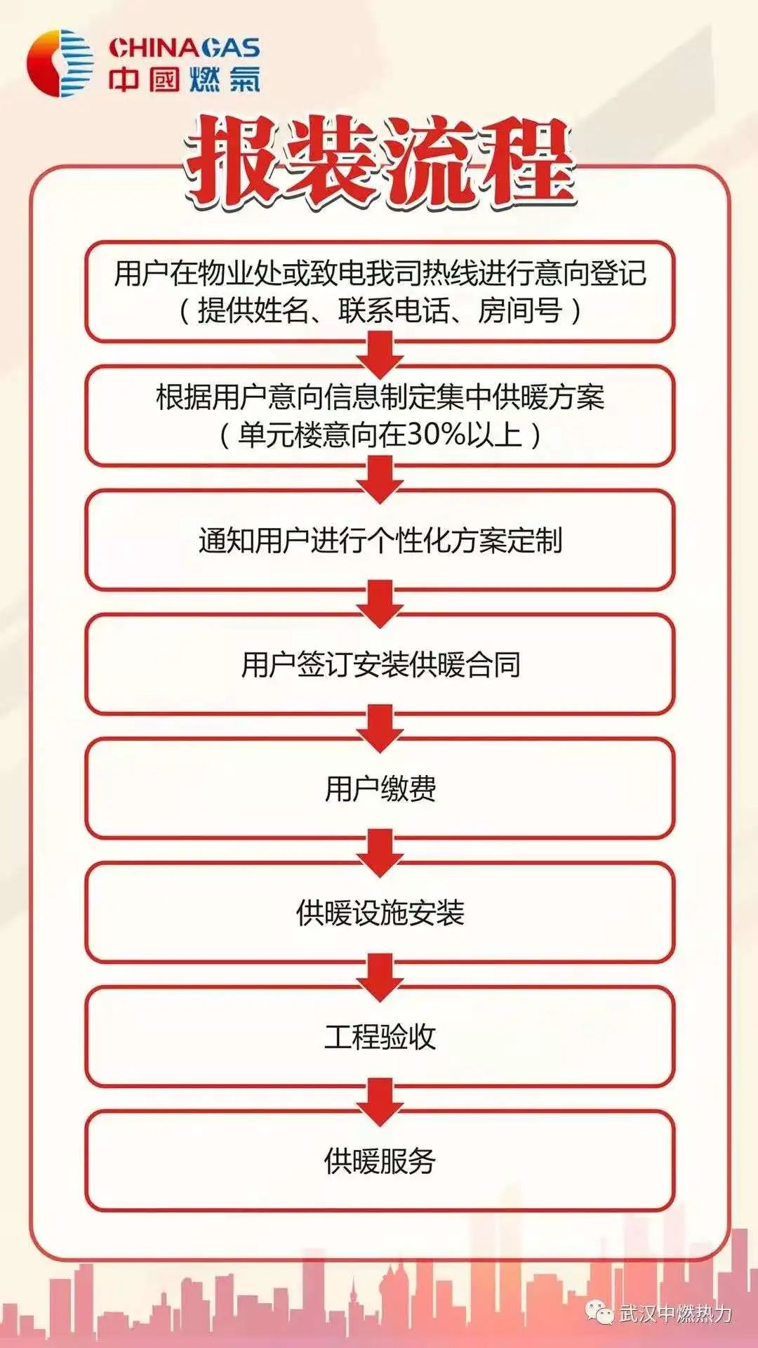今年中国燃气控股有限公司与江岸区人民政府签署了暖居工程合作协议,中国燃气全资子公司武汉中燃热力有限公司将进行居民住宅供暖设施建设、改造。