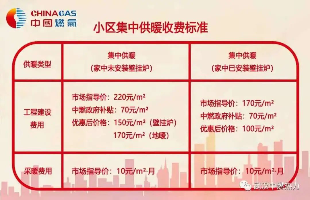目前武汉中燃热力已于今年10月、11月分别在汉阳区、江夏区、蔡甸区和东西湖区成立全资子公司,方便在这些区域开展暖居工程建设。 武汉中燃热力有限公司相关人士透露,武汉市各区居民都可以通过武汉中燃热力填报安装意愿,收费标准全市统一,公司会根据意愿情况来选择一些小区作为试点项目重点推进。