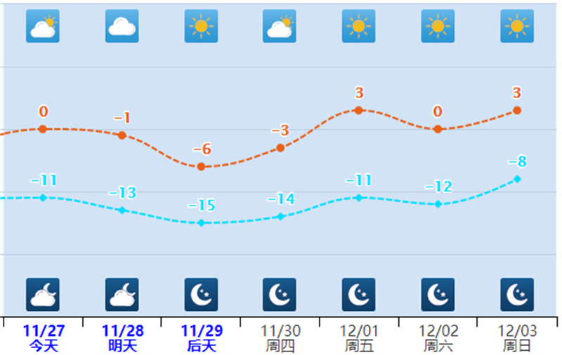 明天夜间到29日,坝上地区阴有零星小雪转晴,其他地区晴间多云。