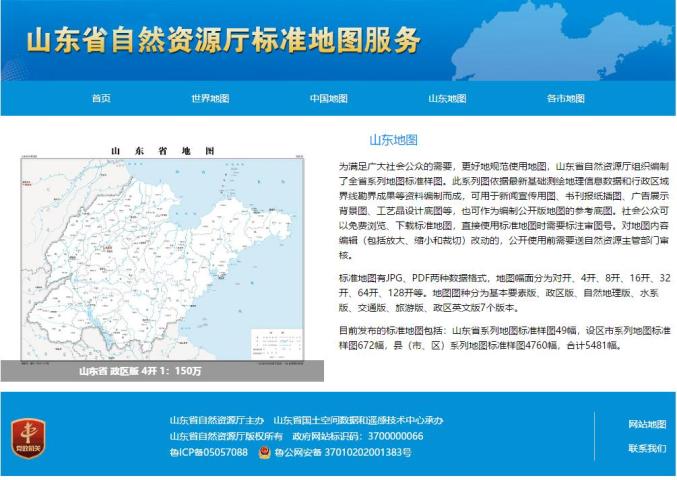 山东省系列地图标准样图也已上线,可以在省自然资源厅官网下载应用。