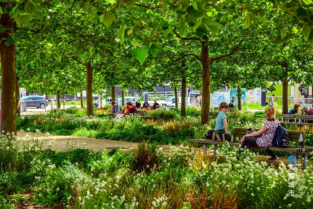 同时,河流也成为公园的一部分,增加了社区对城市水系统的亲和力。传统设计手法中大量使用护栏,隔绝了人与河流的关系,带来对水体的恐惧,而如今温柔美丽的河岸景观则拉近了人与水的距离,这让人类活动空间有了12%的增长。