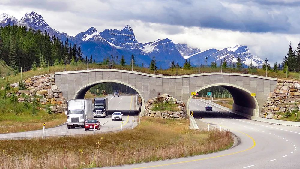 ▼ 班夫国家公园横贯加拿大高速公路上的野生动物立交桥