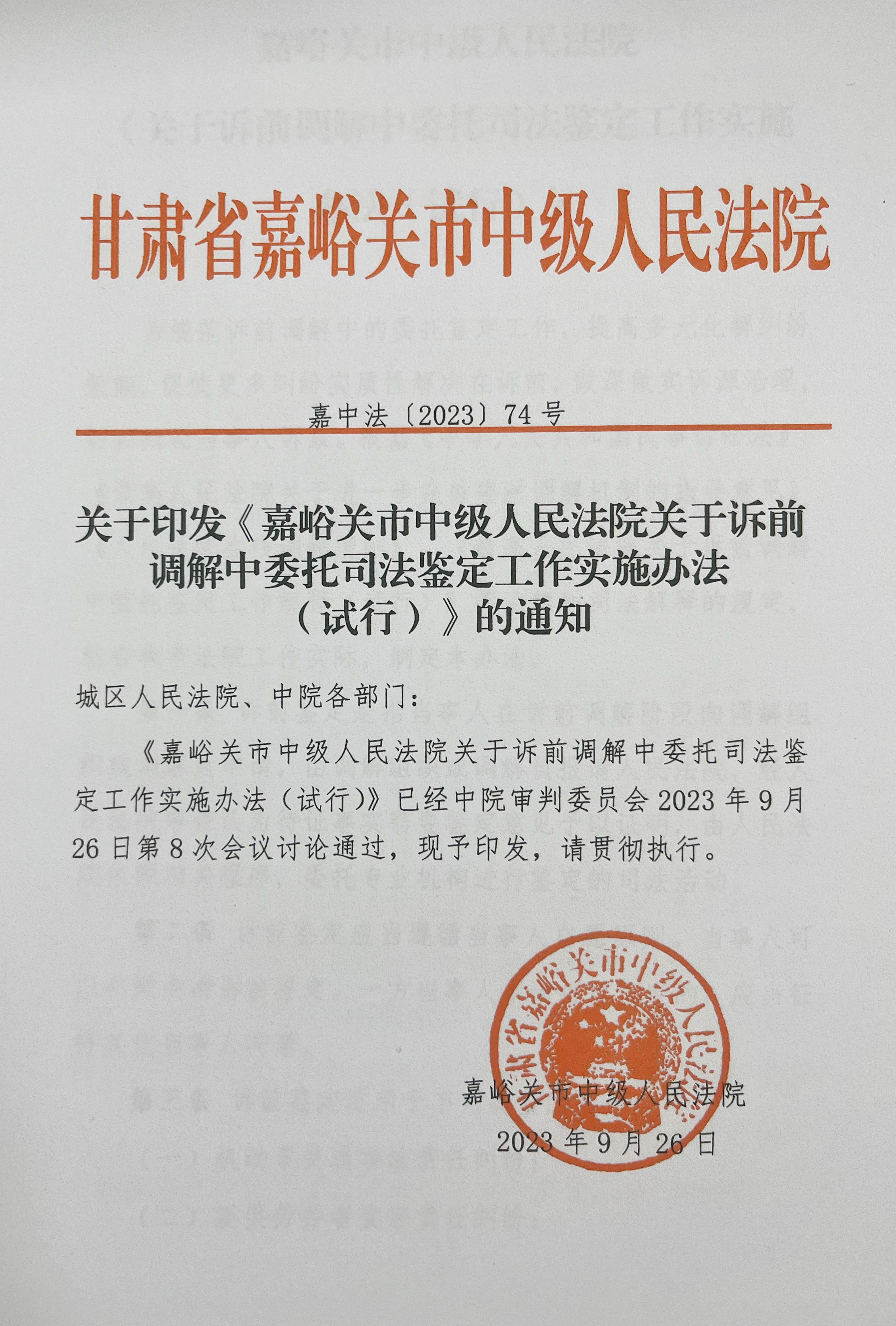 嘉峪关中院印发《关于诉前调解中委托司法鉴定工作的实..