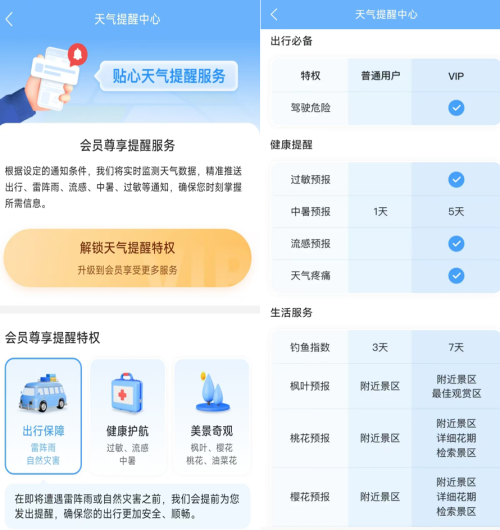 除了精准的天气预报外,墨迹天气还提供33项会员功能服务,除了基本的温度、湿度、风力等信息外,墨迹天气还会为会员用户提供紫外线指数、穿衣指数、钓鱼指数等更加详细的生活建议,帮助用户更好地安排日常活动。同时,墨迹天气会员还享有专属的健康气象服务。通过过敏预报、流感预报等功能,用户可以提前了解可能影响健康的天气因素,并采取相应的预防措施,对于有特定健康需求的用户来说是一大福音。此外,墨迹天气会员还拥有景区天气预报和赏花预报等特色功能。无论是计划出游还是赏花,用户都可以提前了解目的地的天气情况,从而做出合理的出行规划,