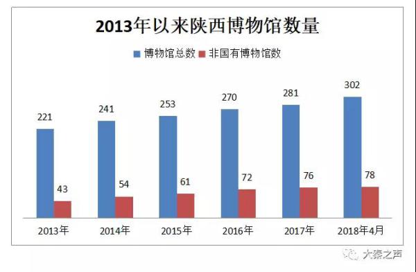 陕西省博物馆数量仅次于山东、浙江、河南省居全国第4位,13个陈列展览先后获“全国博物馆十大陈列精品”奖,陈列展览水平全国领先。也有数据显示,陕西302座博物馆呈现参观人数淡旺季极差、服务冷热两极分化的态势,人气最热的博物馆日均参观人数达15000人,远超3000人接待能力,游客参观感受下降,服务饱受诟病;另一些博物馆陈列寡淡、游客门可罗雀。