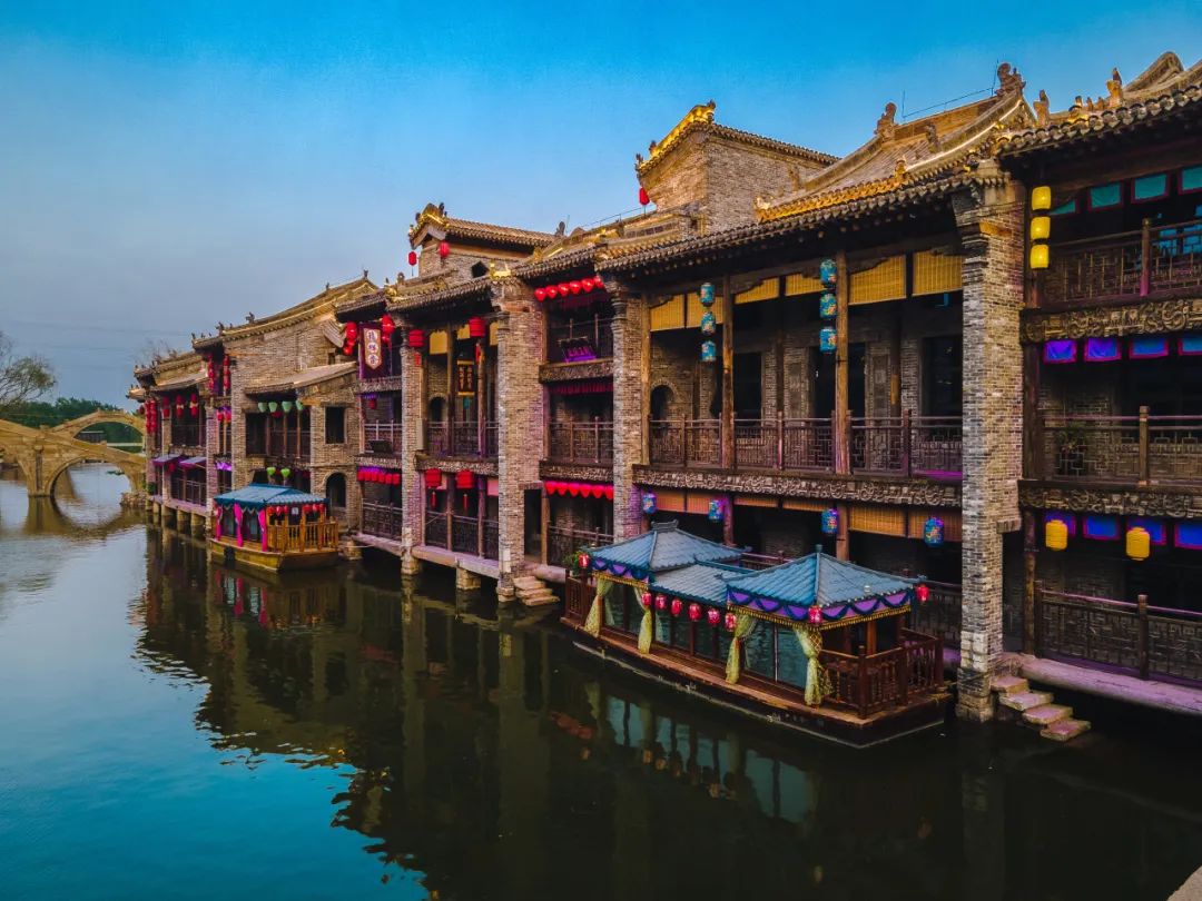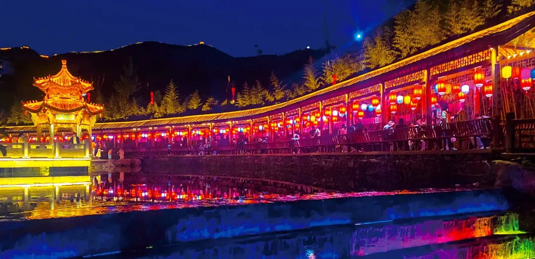 德明古镇坐落在风景优美的问情谷,是一座以元曲为主题文化、以清明上河图为原型、以爱情为重心打造的特色商业街。建筑上吸纳了金、元、明、清时期建筑文化的精华,桥楼榭亭设计精巧、古朴厚重,书院、酒肆、茶楼、驿站、作坊等古代建筑建在山水之间,来这里在斗拱飞檐之下遍览美景,在山水环绕间品味古韵。