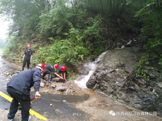陕西省红河谷景区十里峡云仙门至神龟宝蛋段山体松动,发生落石和滑坡现象。图片来源:陕西省红河谷森林公园