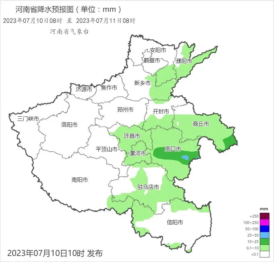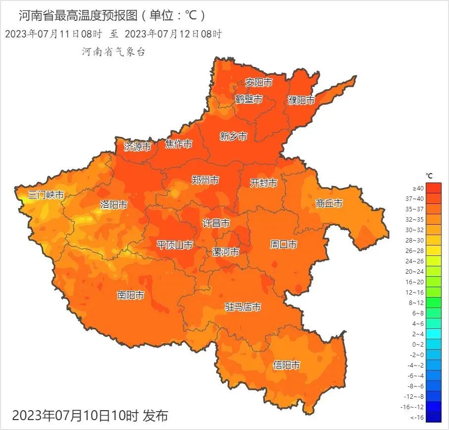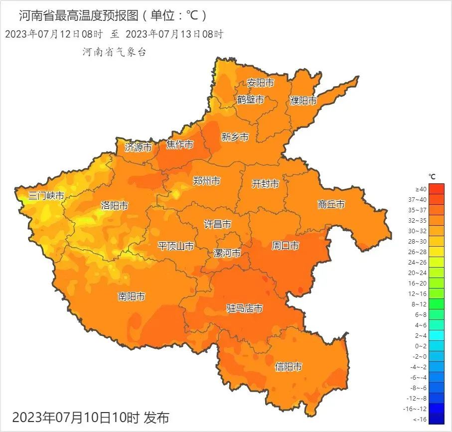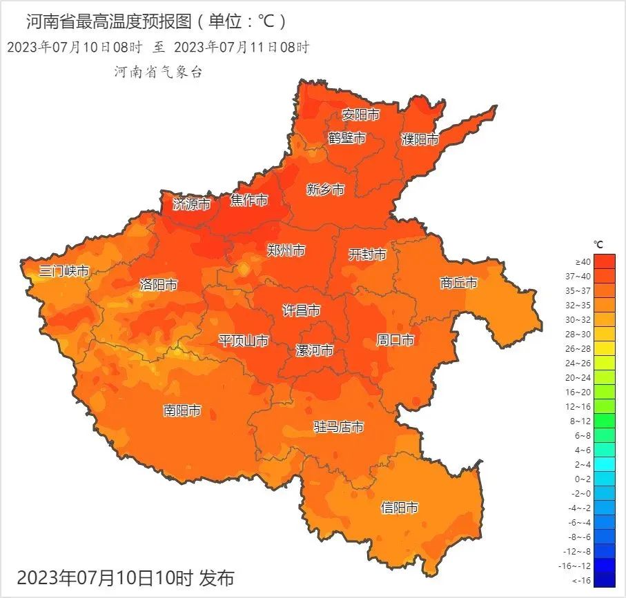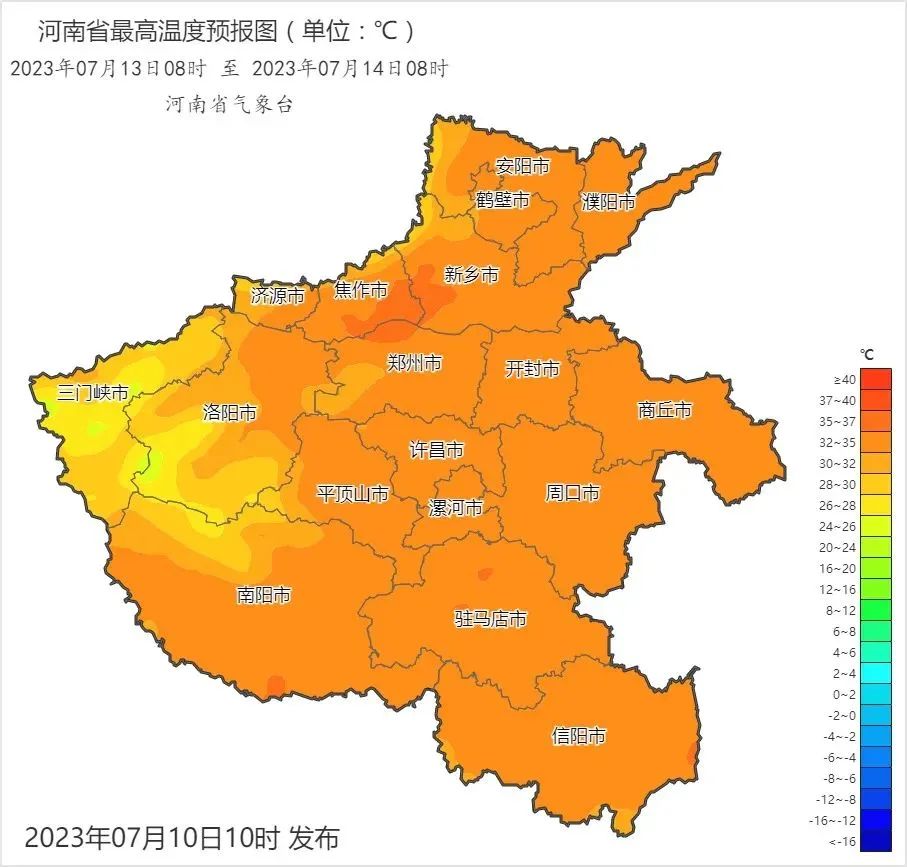 今天下午到夜里,南阳东南部、信阳、驻马店、周口、商丘、漯河、许昌、开封、新乡东部、安阳东部、濮阳多云转阴天,有分散性阵雨、雷阵雨,其中商丘、周口局部有中到大雨并伴有短时强降水等强对流天气;其他县市晴天到多云。北中部最高气温38到40度,局部42度。