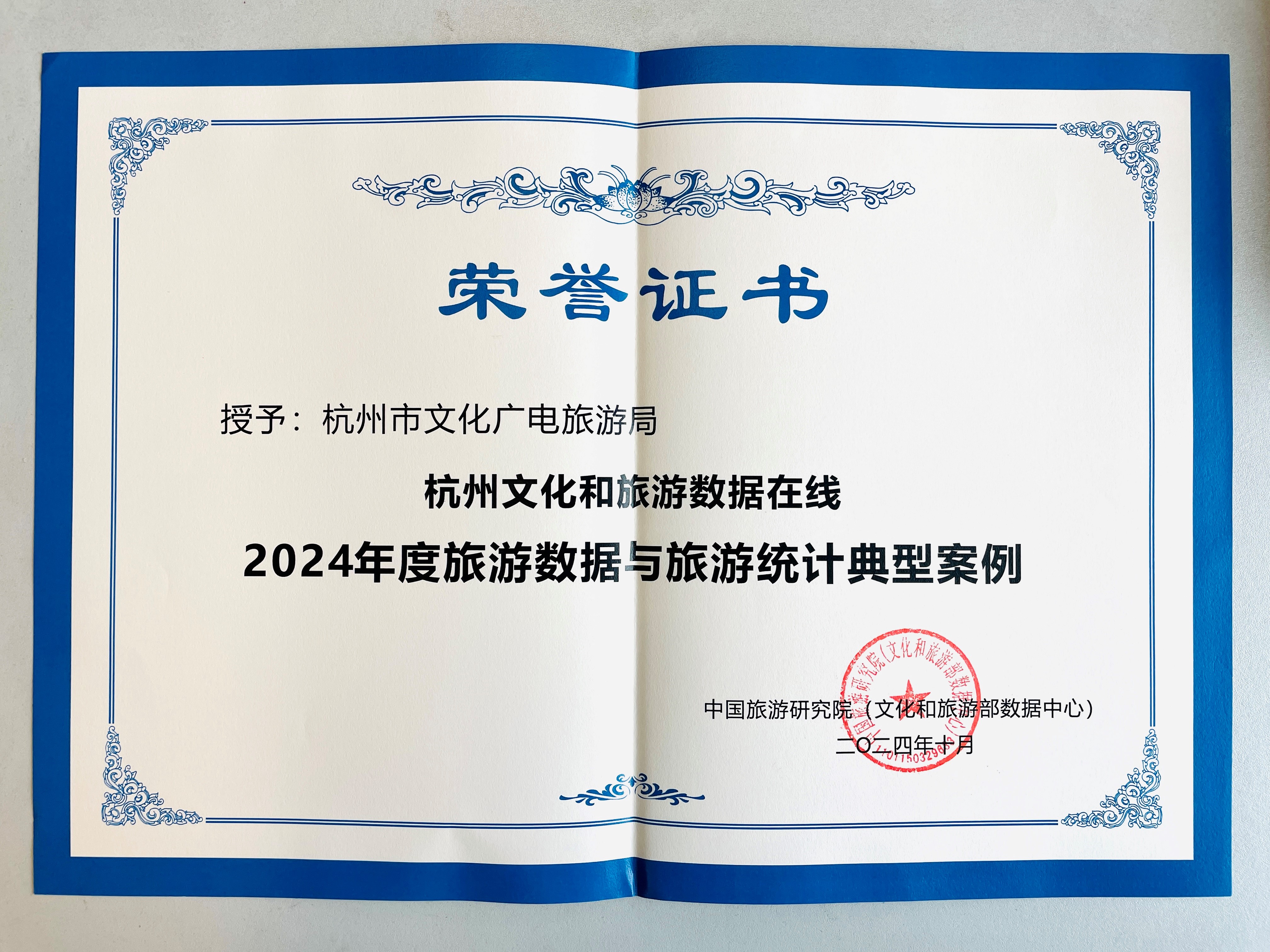 2024年10月15日,中国旅游研究院在2024年旅游数据与旅游统计人才能力提升高级研修班开班仪式上,发布了“2024年度旅游数据和旅游统计典型案例”,其中“杭州文化和旅游数据在线”成功入选。