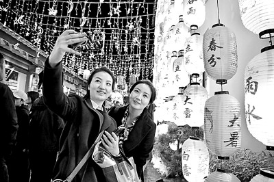 游客在位於天水市秦州區的天水古城合影留念。新華社發