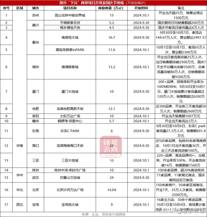 不完全统计显示,今年国庆期间开业的大型商场有28家。其中,超过一半的商场位于三线及以下城市,即便有些位于二线以上等级城市,大多也集中在非市中心区或者老城区的改造项目。