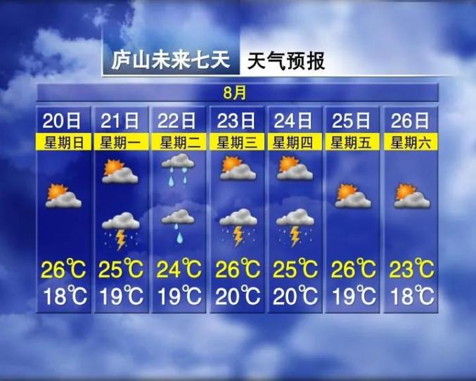 赣北多云间阴天,局部地区有阵雨或雷阵雨