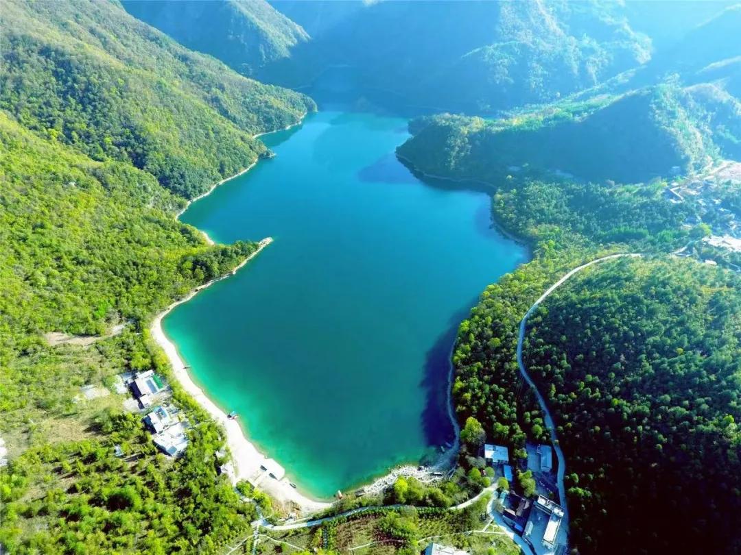 它就如同一颗翠绿的宝石镶嵌在崇山峻岭之中。