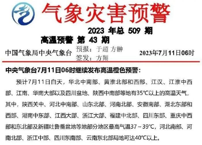 刚刚入伏,暑热就扑面而来。6时23分,我省气象台变更高温橙色预警信号,预计未来24小时内,南昌、宜春、鹰潭、新余、抚州、吉安、萍乡、景德镇、上饶九市和九江市西部、赣州北部的部分地区最高气温将达37℃以上。
