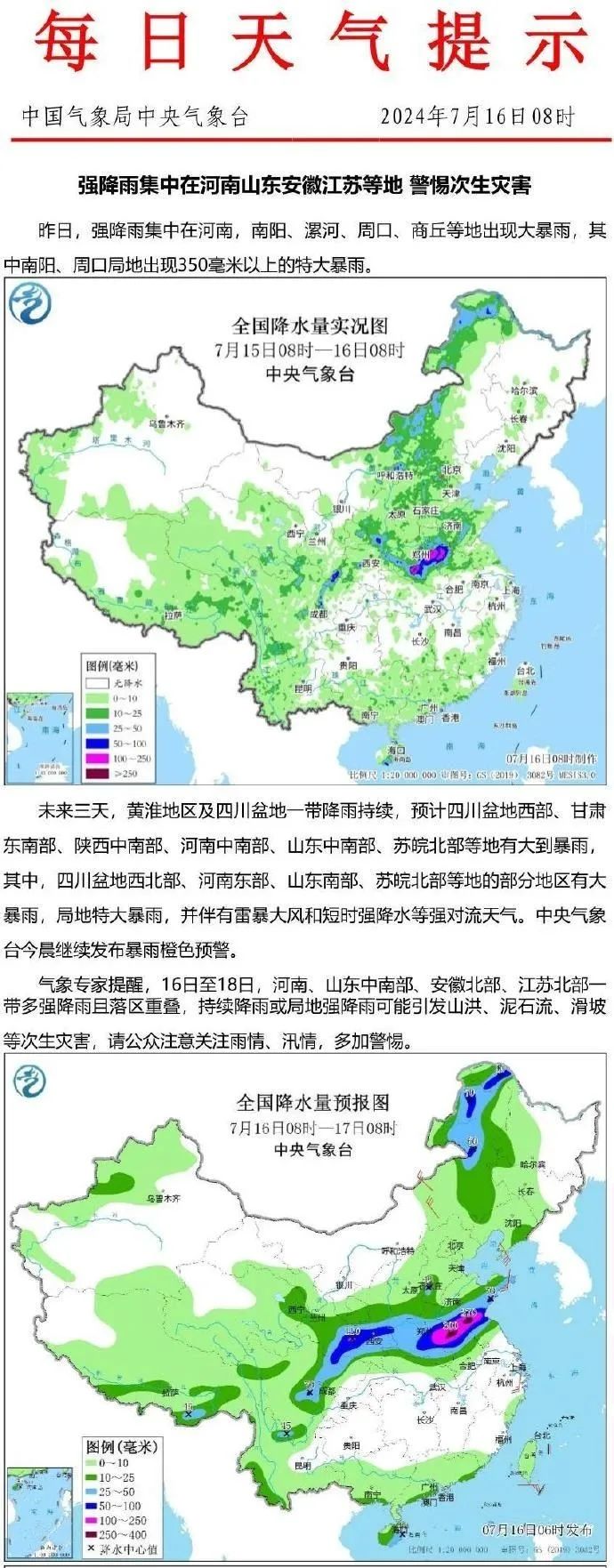 其中河南局地有特大暴雨