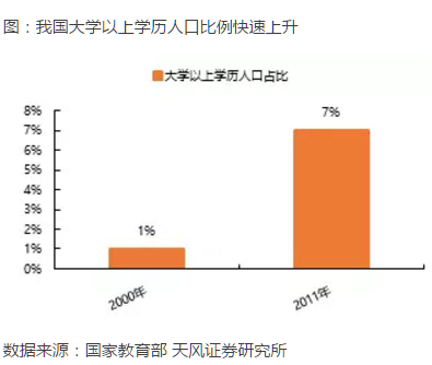 更高的教育背景带来了不同的消费观念,80后、90后消费者接受教育程度明显高于父辈,具备海外留学经历的群体数量也在快速增长。大学以上学历人口占比剧增,主要得益于新增适龄年轻群体接受更高教育的人口比例迅速上升。