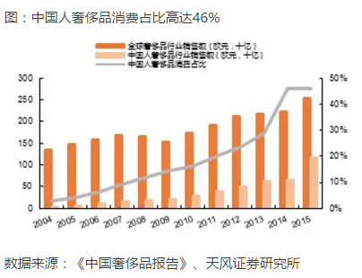 炫耀性消费可以通过远超物品使用价值的消费,向他人炫耀和展示自己的金钱财力和社会地位,以及这种地位所带来的荣耀、声望和名誉。以奢侈品行业为例,根据《中国奢侈品报告》显示,2015年中国消费者全球奢侈品消费达到1168亿美元,占全球奢侈品消费比例高达46%。在过去十年间,全球奢侈品新增消费需求中超过70%来自于中国消费者。
