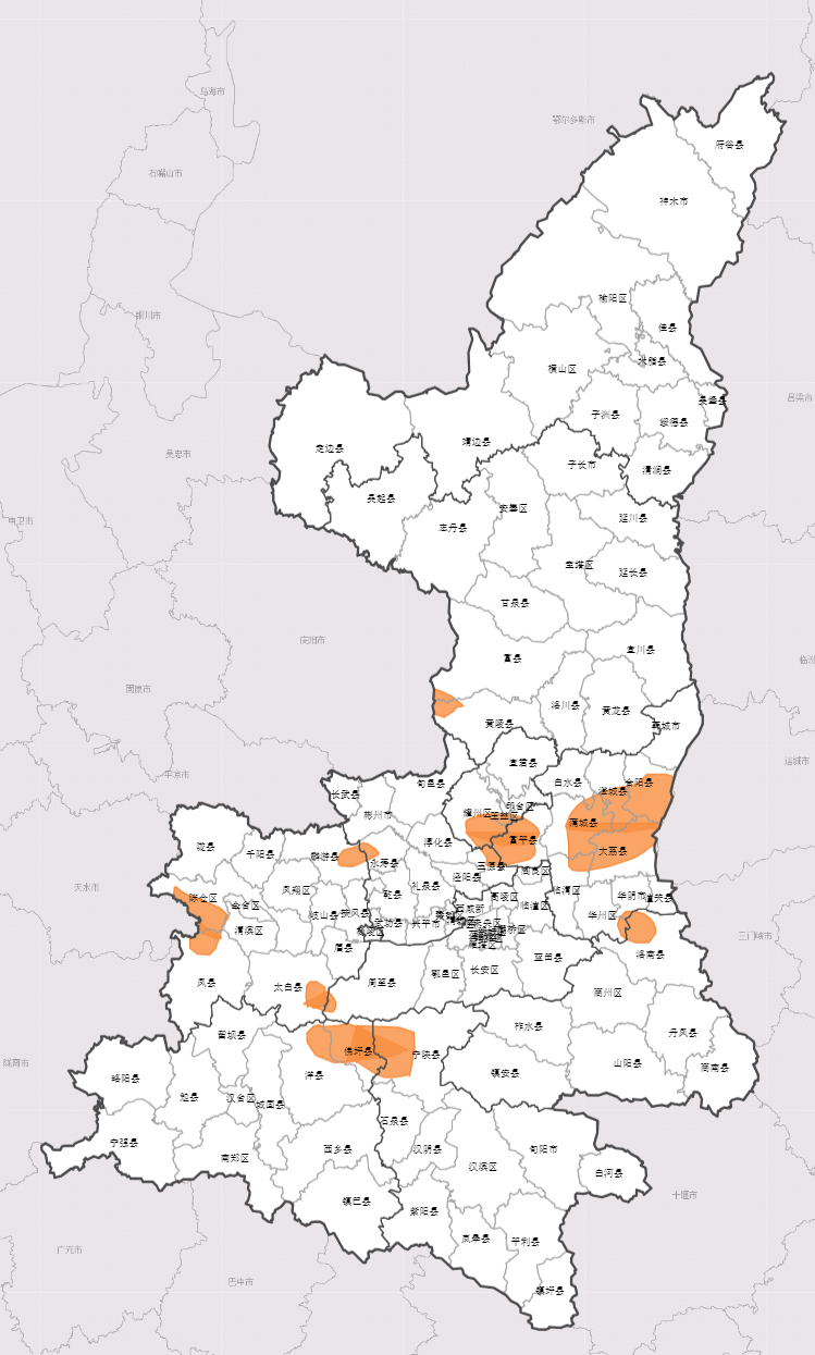 预计下述地区未来6小时内出现冰雹天气可能性很大,并可能造成雹灾:西安市周至县,宝鸡市渭滨区、陈仓区、太白县、麟游县、凤县,咸阳市三原县、永寿县,铜川市王益区、印台区、耀州区,渭南市临渭区、华阴市、华州区、大荔县、澄城县、合阳县、蒲城县、富平县、白水县,延安市黄陵县、富县,汉中市洋县、佛坪县,安康市宁陕县,商洛市洛南县,请注意防范。
