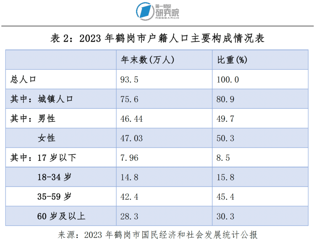 现如今,鹤岗正面临着年轻人口外流和人口老龄化的双重挑战。据全国人口普查数据,鹤岗市常住人口从2010年的105.9万人下降到2020年的89.1万人,降幅达15.8%。2020年,全市人户分离人口为316540人,其中省内流动人口为187377人,跨省流入人口增加了7187人。根据2023年鹤岗市国民经济和社会发展统计公报,年末全市户籍总人口为93.5万人,其中60岁及以上人口占比达到了30.3%,18-34岁人口占比仅为15.8%,反映出人口老龄化、年轻人口外流的趋势[7]。