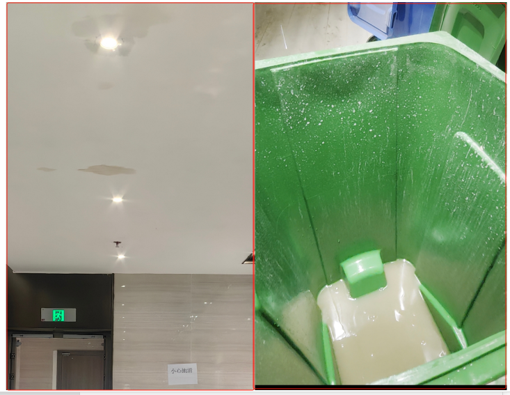在记者走访的四栋楼中,共发现屋内或公共区域漏水点20余处。