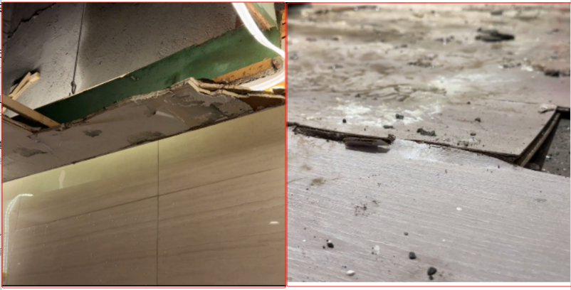 “漏水严重点的单元入户口就像水帘洞。”童先生又带记者来到5号楼负一层车库入户口,顶部管道正在向下流水,灯带在正常通电的情况下散坠在挂满水珠的墙面,地板已变形。