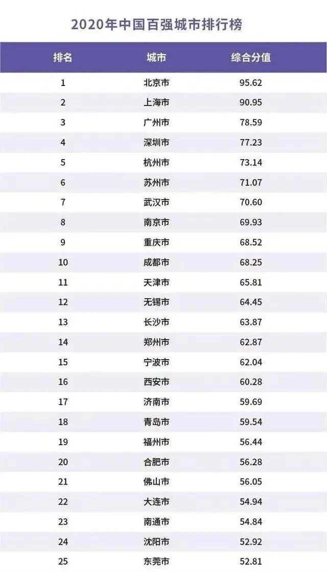 据悉,该排行榜已连续发布六年,以GDP总量排名前110位的城市作为入围城市,再根据经济指标(占比61.8%)和软经济指标(占比38.2%)的综合得分进行排序。经济指标由GDP、居民储蓄和财政收入组成,软经济指标由环境、科教、文化、卫生组成。各指标得分均按其总量(占比61.8%)和人均量(占比38.2%)综合而成。