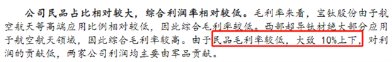 归根结底,是因为宝钛股份销量的大幅增长,很大程度上受益于民品市场的扩张。但钛金属在民用领域,却并没有多少利润空间。