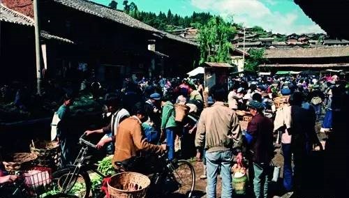 ▲1989年的四方街,尚是菜农云集的传统农贸市场 摄影/杨福泉