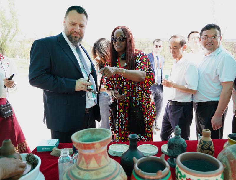在宝鸡市凤翔区柳林镇,驻华外交官们走进陕西柳林酒业集团,通过复原古代酿酒场景的泥塑、各个时代不同的酿酒工具、珍贵的历史物件及资料等,了解白酒酿造技艺的传承发展。