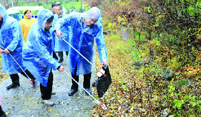 10月 30日下午,宝鸡旅游人走进青峰峡景区,冒雨开展捡拾垃圾爱心志愿服务活动,以实际行动倡导人人文明旅游,争当宝鸡旅游形象代言人,为建设美丽宝鸡作出自己的贡献。