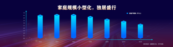 随着年轻人结婚年龄推迟,处于单身阶段的时间延长,非传统类型家庭的数量日益增多,家庭规模小型化,独居盛行。根据人口普查资料,2000-2020年,一人户、二人户的家庭占比分别从8.3%、17.0%增至25.4%、29.7%,而三人户及以上家庭占比有所下降,同期,我国家庭户平均人口规模从3.4人降至2.6人。
