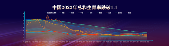 先来看少子化。这些年我国出生率持续大幅下降,2019-2022年出生人口分别为1465、1200、1062、956万人,持续下降。2022年总和生育率跌破1.1,不仅低于欧美,还低于日本。生育率的下降是发展到一定阶段必然的结果,欧美都呈倒U型,但是我国生育率显著偏离正常值。