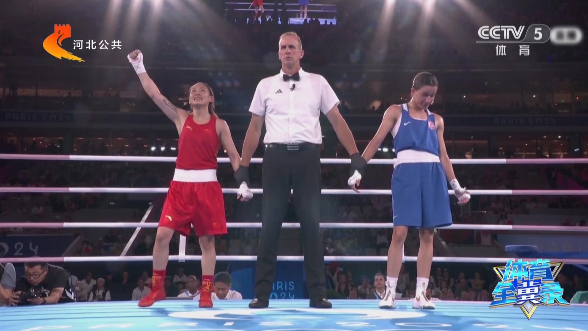 传递体育精神,凝聚拼搏力量,助力体育强省建设。这里是河北省体育局、河北广播电视台联合制作的《体育全“冀”录》。来关注巴黎奥运会上河北运动员的精彩表现。北京时间8月9日凌晨,巴黎奥运会拳击女子54公斤级决赛,河北运动员常园击败土耳其选手阿克巴斯,夺得金牌。这是中国女子拳击奥运历史上首枚金牌,同时也是中国体育代表团本届奥运会第29枚金牌、河北省第3枚金牌。下面,我们先来回顾一下常园夺冠时激动人心的时刻。