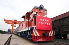 18日10时许,一趟满载110个标准箱日用百货、汽车配件、机械设备等出口货物的中欧班列从铁路义乌西站驶出,驶往逾万公里外的西班牙马德里。
