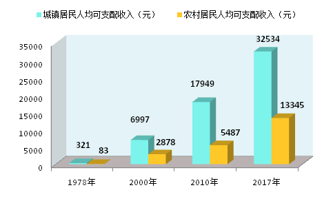 图7 1958-2017年主要年份城乡居民人均可支配收入