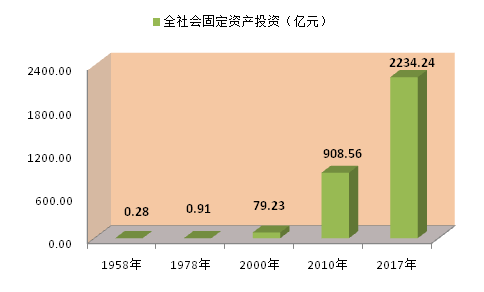 2017年,全市固定资产投资2234.24亿元,是1958年的7979.4倍,年均增长16.4%,是1978年的2455.2倍,年均增长22.2%。近几年,全市固定资产投资保持较快增长,2011年突破1000亿元大关,2015年迈上2000亿元台阶,为全市经济发展注入强劲动力。