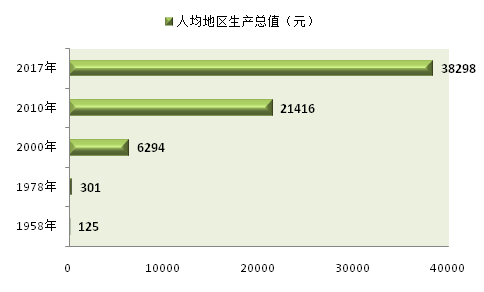 居民收入、平均工资水平大幅提升。2017年,全市城镇居民人均可支配收入32534元,是1978年的101.4倍,年均增长12.2%;农村居民人均可支配收入13345元,是1978年的160.8倍,年均增长13.4%。城镇单位在岗职工平均工资65694元,是1958年的254.5倍,年均增长9.8%;是1978年的117.6倍,年均增长13.0%。