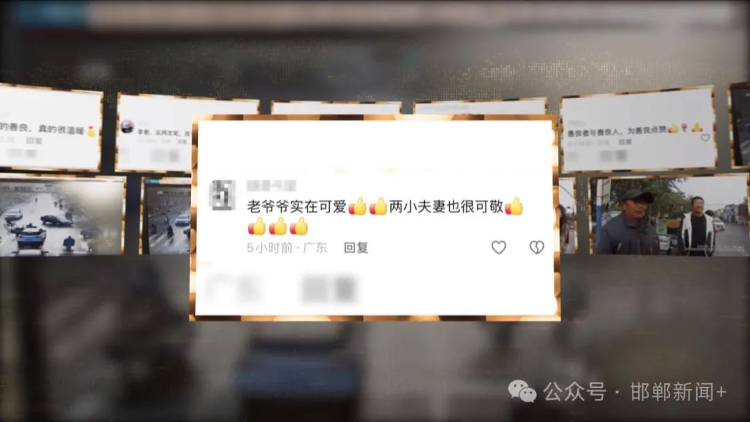 网友评价道:老爷爷可爱可敬有担当,年轻夫妻俩善良温暖有爱心,这场双向奔赴的“善与美”,实实在在温暖了这个冬天,为大家点赞!