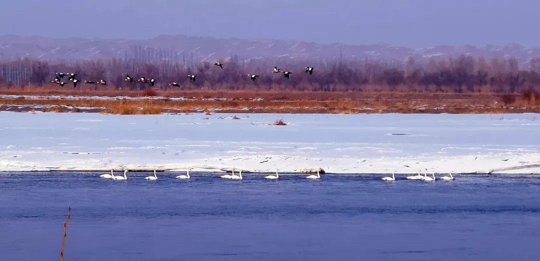 黑河诸水系在流经张掖时,形成了大面积的河流、湖泊和沼泽,河流两岸形成了带状的芦苇湿地、红柳灌丛湿地,这里生机勃勃,群鸟嬉戏。