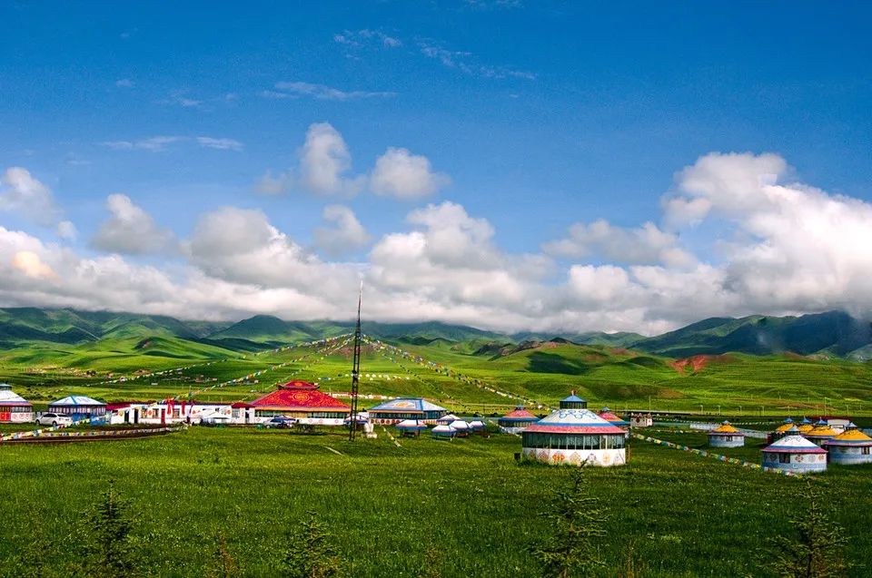 在甘肃广袤高原中,夏河尤如一块镶嵌在黄绸缎上的翡翠,格外耀眼。