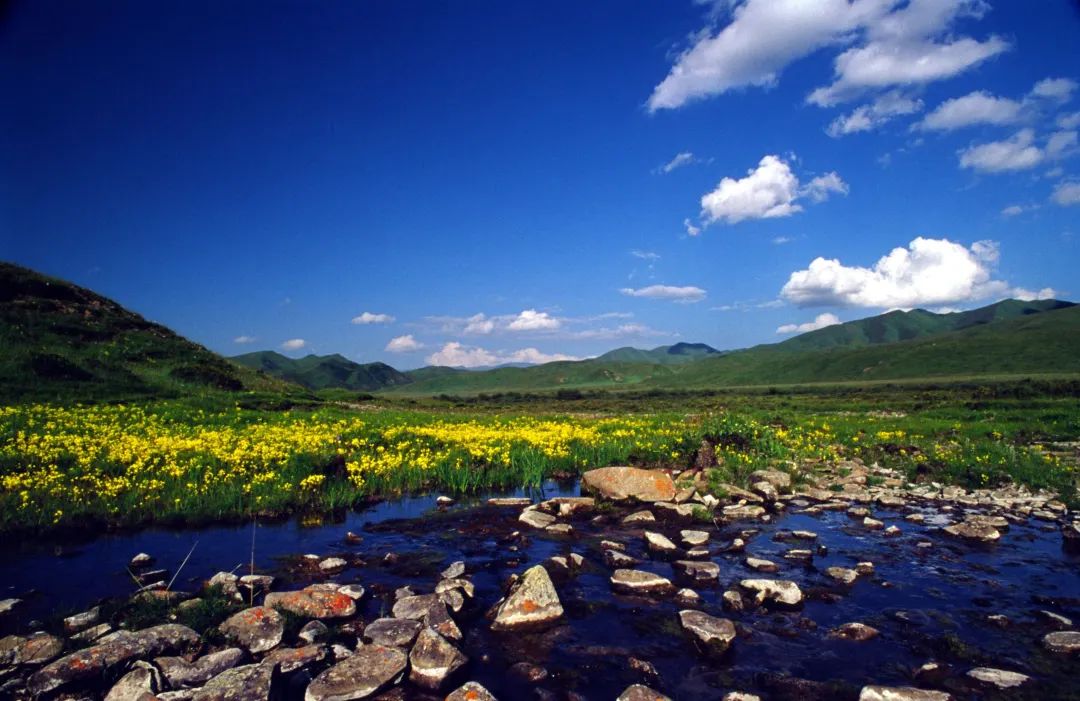 这里一望无垠,绿草如茵,既有草原的辽阔,又有溪水的柔美。既有蓝天白云的透彻,又有牦牛藏羊的活跃。