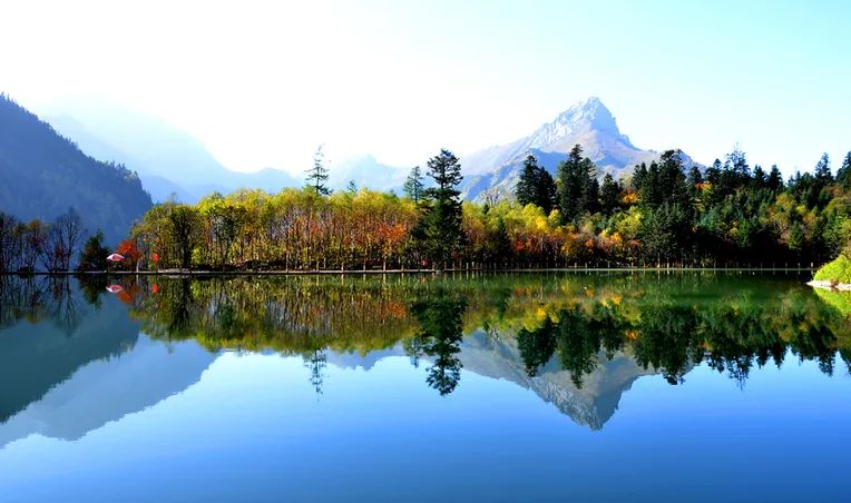 当晨雾慢慢在湖面散开的时候,令人惊叹的景色映入眼里,如海市蜃楼般的远山在朦胧中被雾气折射的阳光照耀,湖面入境水天无垠。